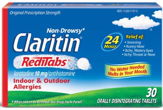 Administration of CLARITIN REDITABS (loratadine rapidly-disintegrating tablets): Place CLARITIN REDITABS (loratadine rapidly-disintegrating tablets) on the tongue. Tablet disintegration occurs rapidly. Administer with or without water.